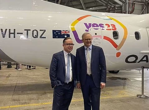 This all seems to be to curry favor with Anthony Albanese. Anthony Albanese is at the forefront of this campaign and has praised Qantas. He has seemingly bullied anyone and any company that dares support no while having the temerity to accuse the no campaign of bullying. That is gaslighting and misinformation if ever I saw it. It is, however, little wonder that Qantas is in Albanese’s pocket and vice-versa. Albanese’s government blocked Qatar from running more flight routes, thereby harming customers. It now seems clear why. Qantas is supporting Albanese’s pet project.